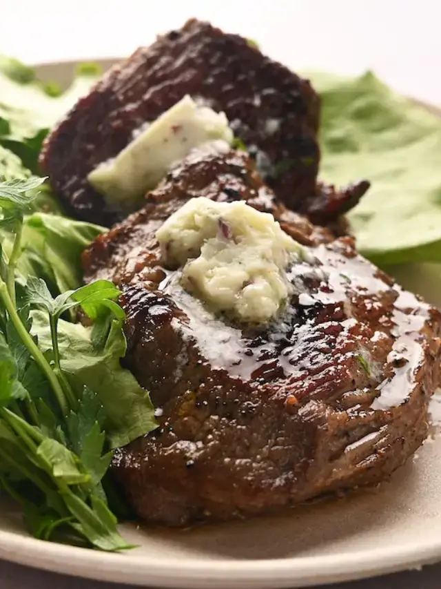 Pan-seared flat iron steak finished with creamy blue cheese compound butter, delivering big flavor with minimal fuss.